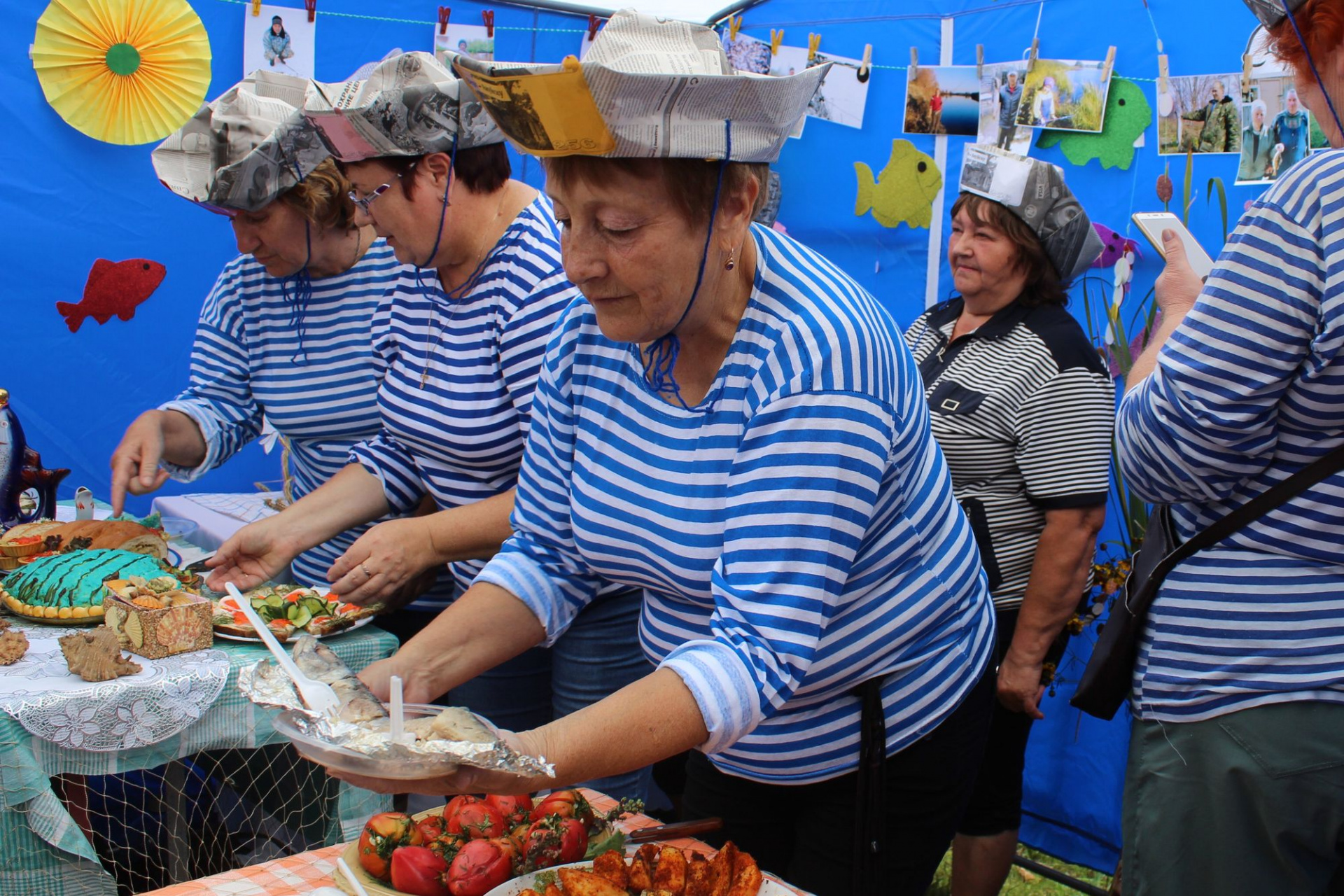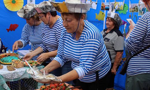 Говорят, старшее поколение Новопокровки две ночи провело без сна, готовясь к фестивалю: рыбачили и стряпали, рано утром перед праздником коптили карася и ротана. Участники фестиваля презентовали жюри блины с икрой и рыбный холодец, всевозможные салаты и выпечку с рыбой. У верхануйцев представлением заправлял царь морей, вся делегация села была в тельняшках, вокруг танцевали русалки, а напротив палатки установили штурвал корабля – он пользовался большим спросом как фотозона.