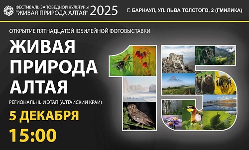 «Тепло встреч. Восторг от работ... Советую к посещению» – пишет о юбилейной фотовыставке одна из участниц полуфинала конкурса-2025 по Алтайскому краю. Очередной повод увидеть «Живую природу Алтая» в ближайшую субботу предлагает Фестиваль заповедной культуры. 13 декабря рассказчиком о тайнах и открытиях мира птиц в ГМИЛИКА станет вице-президент Союза охраны птиц России Алексей Эбель. Начало встречи – в 13.30.
