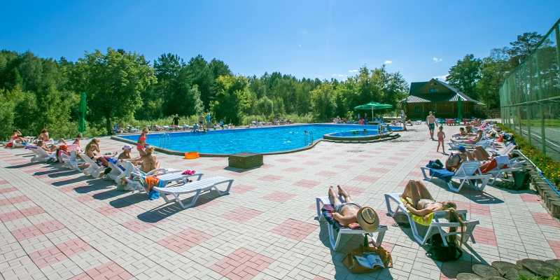 Для взрослых здесь работает большой летний бассейн, в стоимость посещения которого входит пользование душем, раздевалками и тентами. Для детей оборудован отдельный бассейн, есть бар с безалкогольным меню, игровая зона с батутом. Кроме того, на территории комплекса расположены спортивные площадки, зоны отдыха, ресторан. За дополнительную плату можно воспользоваться спортивным инвентарем и покататься на пони.
