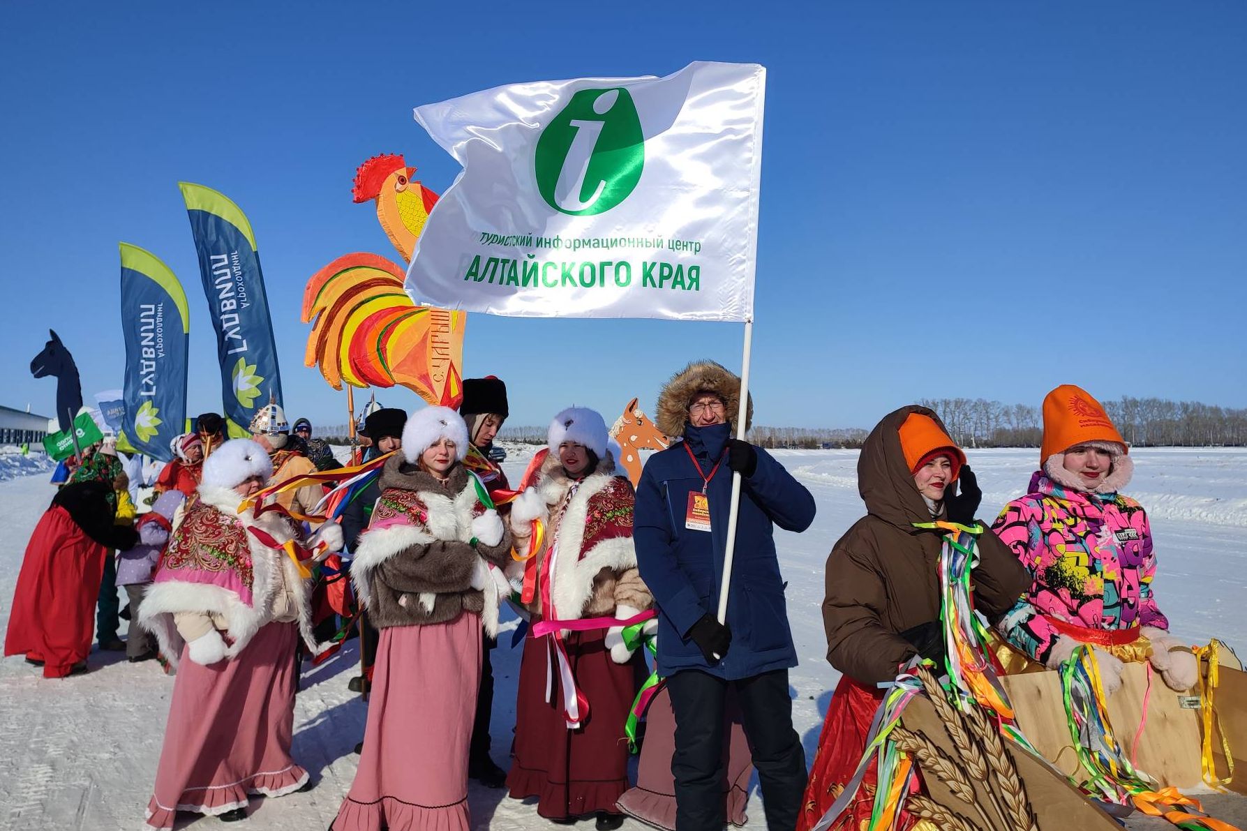 Весь день на Сибирской Масленице работали делегаты Туристского информационного центра / ТИЦ Алтайского края. Заглянувшие в шатер ТИЦ гости получали подарки за правильные ответы в викторине о путешествиях по региону. Путеводители, топовые подборки локаций и определители птиц Алтайского края сделают поездки гостей фестиваля более информативными и интересными.