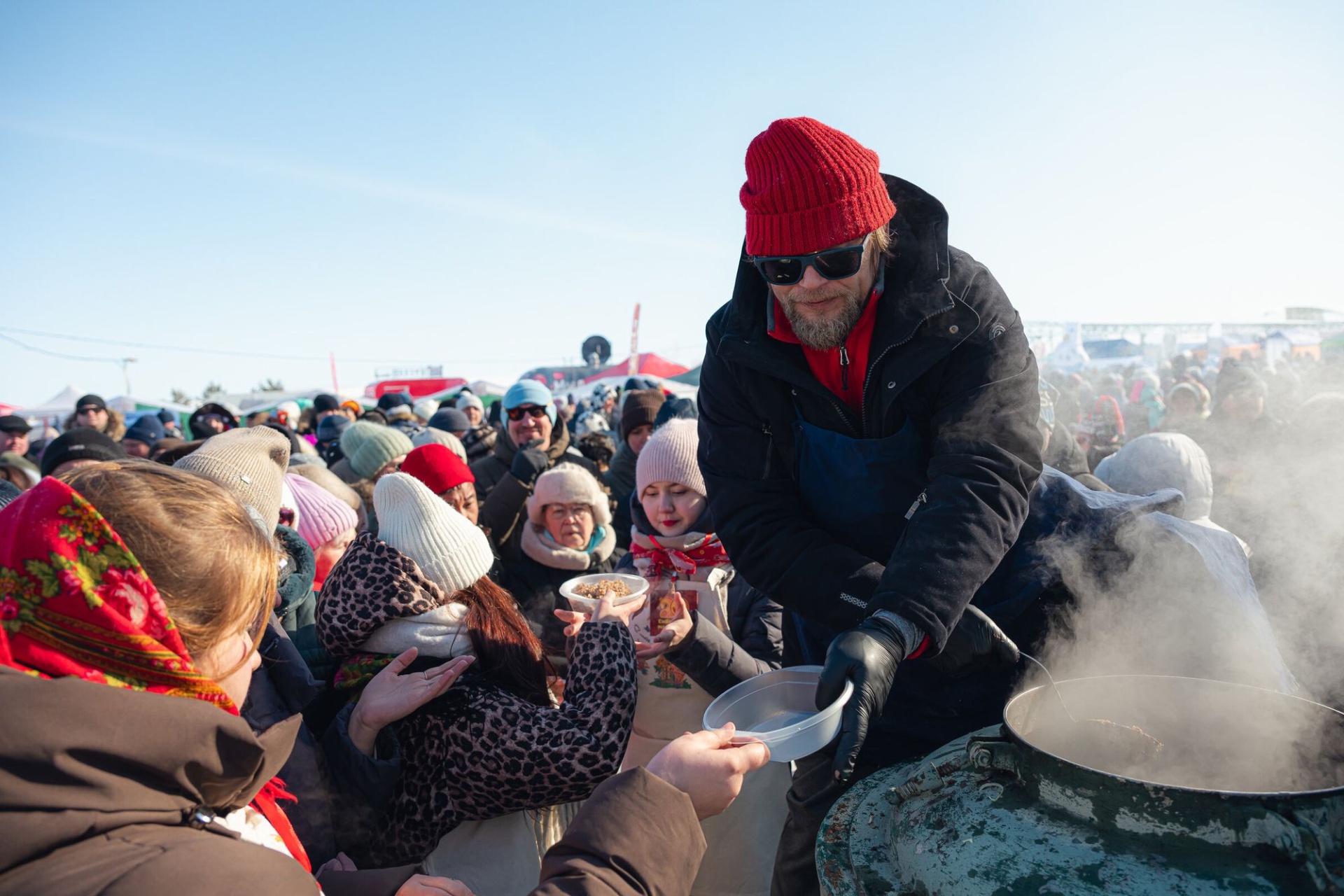 Через несколько минут после того, как возле сцены у озера закружился мега-хоровод, на экране вспыхнула цифра нового рекорда: 1275 человек! На 141 хороводника больше, чем в 2019-м. «Это реально было мощно. Чувствуешь себя частью чего-то огромного и настоящего», – пишут очевидцы. Активное движение в минус 15 было спасительным: холод нагонял ветер, поднявшийся после церемонии открытия фестиваля. Чувствовалось: зима не хочет уходить, и главной задачей гостей и партнеров Сибирской Масленицы было – не превратиться в сосульки!