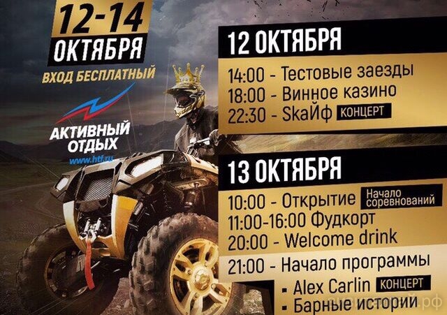 Днем – гонки на квадроциклах, вечерами – выступление «Группировки SkAйФ» и американского музыканта-рекордсмена. Ближайшие «квадро-выходные» в игорной зоне «Сибирская монета» будут насыщены развлечениями. Тестовые заезды начнутся в пятницу, квадро-гонки – на следующий день. Таким жарким соревнованиям необходимы не только сильнейшие спортсмены Сибири, но и горячий отклик зрителей!