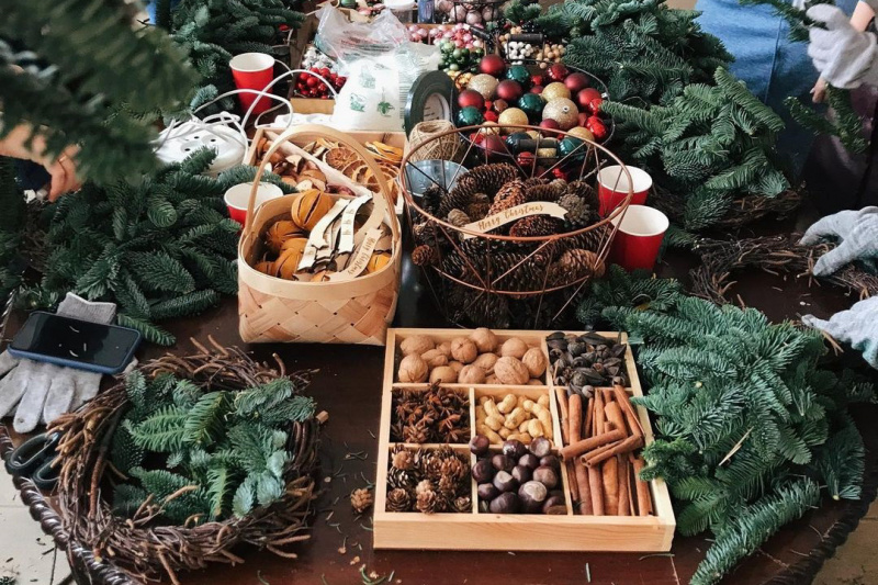 Ощутить запах настоящей душистой ели и создать свой собственный неповторимый венок из веточек, лент, ягод и других атмосферных мелочей, угоститься горячим травяным чаем, вкусным десертом, и даже шампанским в эти выходные можно в