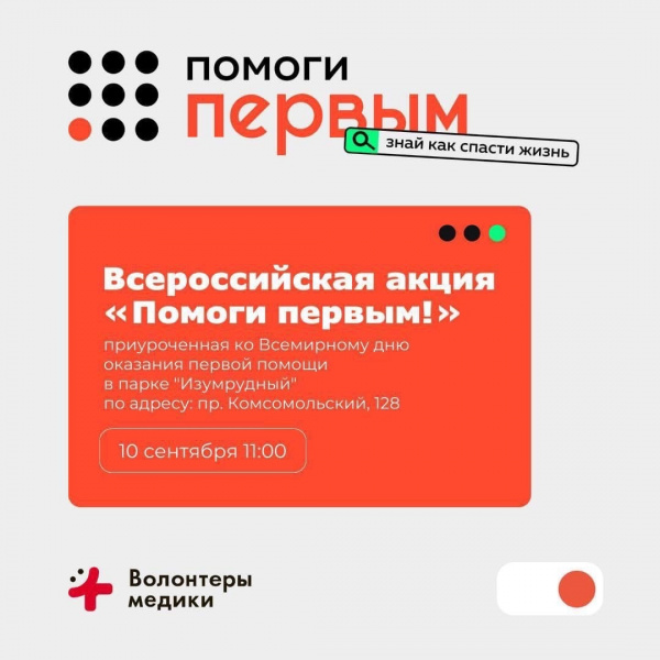 В парке «Изумрудный» волонтеры-медики научат всех желающих оказывать первую помощь при потере сознания, наружных кровотечениях и переломах. Мероприятие пройдет в рамках ежегодной всероссийской акции «Помоги первым».