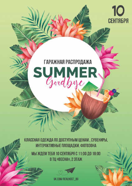 На гараж-сейле Goodbye Summer можно будет порадовать себя покупками за символическую цену, вдохновиться изделиями ручной работы местных мастеров, посидеть на удобных пуфиках и почитать книгу, поиграть в настолки, сделать фотографию у фотозоны.